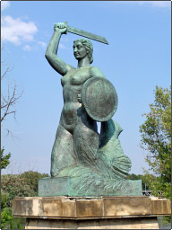 Symbol Warszawy i ostatni pomnik dwudziestolecia międzywojennego. Ustawiony na Wybrzeżu Kościuszkowskim w kwietniu 1939 roku, na kilka miesięcy przed wybuchem II wojny światowej z inicjatywy prezydenta Stefana Starzyńskiego. Konkurs na projekt nowego pomnika symbolizującego herb miasta wygrała rzeźbiarka Ludwika Krasowska-Nitschowa, która zaproponowała władzom Warszawy ustawienie w nurtach Wisły gigantycznej, dwudziestometrowej wysokości figury Syreny odlanej z zielonego szkła i posadowionej na filarze wbitym w dno rzeki. Nocą, umieszczone wewnątrz rzeźby reflektory miały rozświetlać pomnik, co było pomysłem nowartorskim ale zarazem bardzo drogim w realizacji. Z powodu zagrożenia militarnego państwa i braku stosownych środków w budżecie miasta, Nitschowa zmieniła koncepcję pomnika i zaproponowała formę zbliżoną do obecnej - odlaną z brązu postać pół-kobiety, pół-ryby wkomponowaną w masywny cokół-basen ozdobiony figurami mew i ryb. Całość miała uzupełniać woda omywająca postać Syreny. Ustawienie monumentu na bulwarze nadwiślańskim mialo także wymiar symboliczny i propagandowy. Wybuch wojny uniemożliwił jednak dokończenie pomnika - zabrakło czasu na zamontowanie wspomnianych figur ryb i mew.
